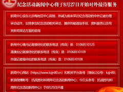 新华社新华社北京8月24日电 记者从有关方面获悉,中国人民抗日战争暨世界反法西斯战争胜利80周年纪念活动新闻中心将于8月27日开始对外接待服务。新闻中心设在北京梅地亚中心宾馆,热诚为前来采访纪念活动的中外记者办理采访证件,安排参加纪念活动相关采访,提供传输通信手段、资料服务以及有关新闻采访方面的咨询。 新闻中心境内记者接待处的联系电话(传真)是:01068510125;港澳台记者接待处的联系电